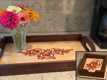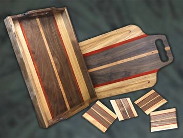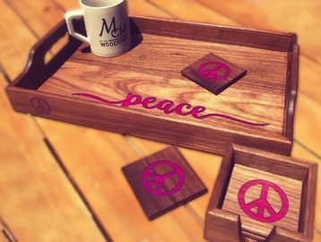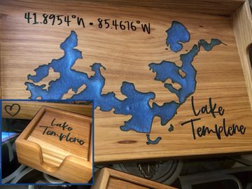 Trays, Cheeseboards, Coasters, Coaster Caddies – Make it a Matching Set! Personalized CNC, your choice of Epoxy Colors & Matching Woods are All Available. As with EVERYTHING I create you can Custom Order anything you can think of. With unlimited Design capabilities & the tools in my Woodshop the possibilities are endless.
